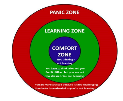 Through careful planning and appropriate opportunities children are enabled and encouraged to work within the Learning Zone – where they will experience challenge but have the curiosity, skills and determination to flourish.