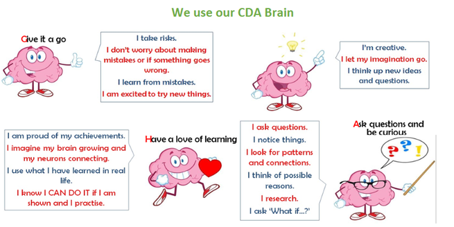 The CDA (curious, determined, ambitious) brain helps children to focus on the skills that make a successful learner!